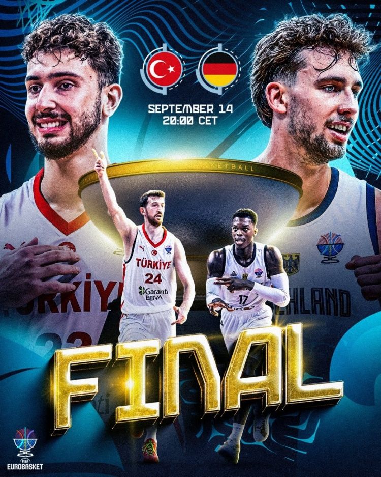 比赛开始,土耳其连续3记三分轰出13-2梦幻开局,但邦加里突外投连砍7分,德国男篮迅速回应11-1追平比分,申京连续送帽但吃到2犯,首节德国领先2分,次节德国进攻突然停滞,施罗德连续失误,小瓦格纳苦苦支撑,申京发力里突外投单节怒砍12分带队半场反超6分。下半场,德国上来10-3小高潮直接反超,但申京上来又是连续砍分助队反超回来,双方比分交替领先异常胶着,末节申京攻防建功带队再次拉开比分,但德国总能回应咬住比分,奥布斯特和邦加连续三分再次反超回来,比赛趋于白热化,申京关键上篮没进,施罗德干拔中投领先3分,申京绝平三分不中,最终德国88-83险胜土耳其,9战全胜夺冠军!